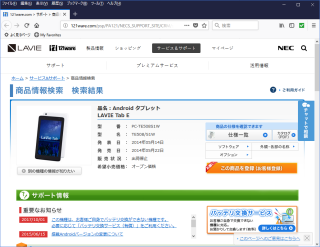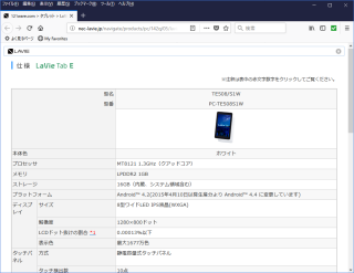 この Androidタブの名前は NEC製 PC-TE508S1W とのこと。