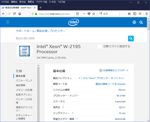 iMac Proの最上位モデルに搭載される CPUは Intel Xeon W-2195 のようだ。
