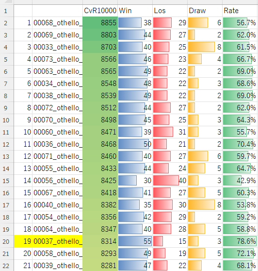 前回の投稿 (45)【Othello AI】強化学習でオセロAIを作る。 で記した CvR(勝手に作った指標)は、すべてのモデルを同じ物差しで比較するための指標だ。