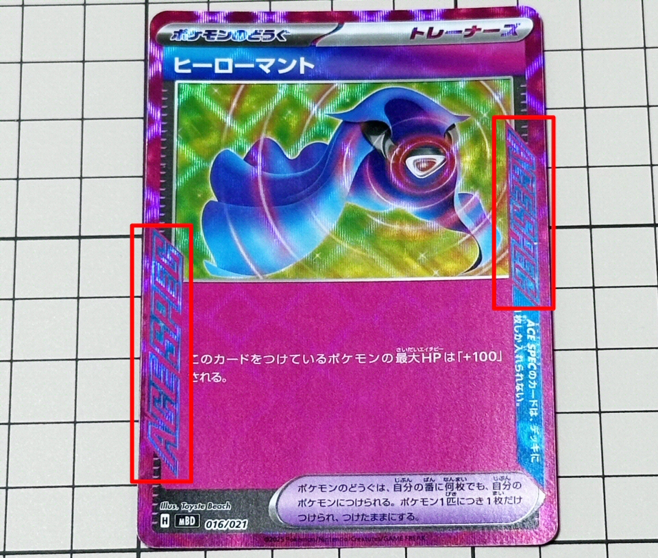 ↓ カードの左端、右端に ACE SPEC と書かれている。